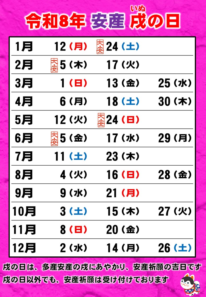 十二日に一度めぐってくる日が「戌の日」です。